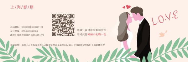 Fotor提供海量的优惠券模板,可以根据你的不同需求进行简单修改文案等操作,即可完成你的影楼婚礼摄影套餐代金券优惠券设计。